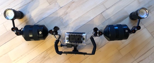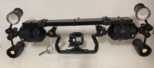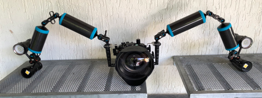 Ideal wäre es, wieder auf 4 Videolampen zu gehen. Aber es sind jetzt schon über 10Kg an Land... ich habe noch 2 kleine DIVEPRO D9F Videolampen. Die werde ich als Fokuslicht und zusätzliches Videolicht einsetzen. Mal schauen, wie es dann klappt.
