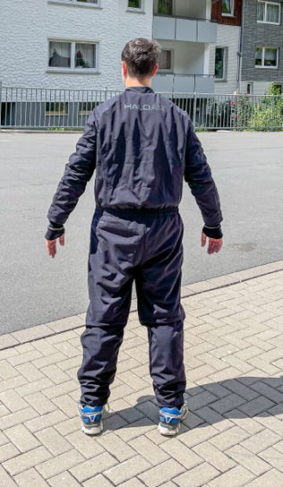 Das hier ist die Hardcore Variante. Über dem Heizshorty kommt derSFTech Polartec Unteruieher mit nochmal 4 Heizplatten am Torso. Ein System dient dann als Heizungsbackup. Natürlich müssen beide Systeme durch den Trocki nach außen geführt werden. Die Verkabelung wird dann etwas aufwändiger. Kleiner Nachteil… die Handschuhe laufen immer nur am primären System.